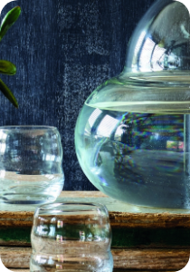 Cada una de nuestras jarras es una pieza única, fabricada con la técnica tradicional de vidrio soplado para darles su particular forma basada en la Proporción Áurea, lo que unido a los componentes naturales del vidrio, produce la revitalización del agua almacenada en ellas.
