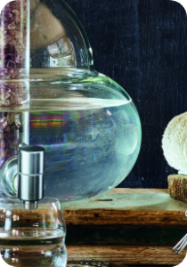 El vidrio, al igual que el cuarzo, está compuesto principalmente de sílice, el cual tiene un pulso vibratorio. La forma de las jarras irradia una vibración de alta frecuencia que eleva la energía del agua, produciendo una reestructuración molecular. Esta Agua Revitalizada recupera su nivel energético natural, como en una vertiente.